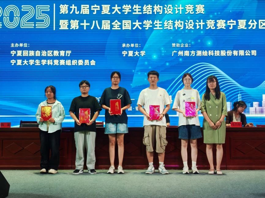 比赛过程中,各参赛队伍充分发挥创新思维,精心设计每一个结构细节,认真制作模型。在加载测试环节,面对各种复杂的荷载工况,同学们沉着应对,展现出扎实的专业功底和良好的心理素质。经过紧张激烈的角逐,最终由宁夏大学土木与水利工程学院包超老师和建筑学院张强老师共同指导的郭忠达、王嘉钰、李何锐同学组成的参赛队脱颖而出,获得区赛第一名。他们将代表自治区高校参加将�10�15日至19日在绍兴文理学院举办的第十八届全国大学生结构设计竞赛。此外,本次竞赛共决出本科组一等奖2项,二等�4项,三等�6项,高职高专组一等奖1项�