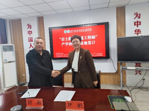 在与会人员的共同见证下,学院党总支书记尹娟教授与宁夏海辉岩土工程有限公司总经理付海代表双方签署了“岩土勘察卓越工程师”产学研联合基地框架协议。协议的签订,标志着校企合作进入了实质性的新阶段,为未来在人才培养、技术研发、成果转化等方面的深度合作奠定了坚实基础�