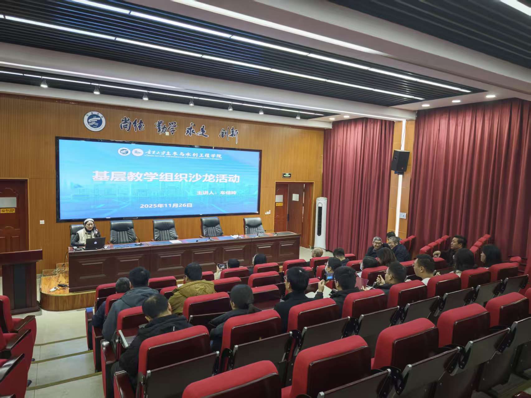 2025�11�26日,由宁夏大学土木水利工程学院土木工程系主办的基层教学组织(岩土与力学教研室)沙龙在知行楼三阶梯教室顺利举行。土木工程系车佳玲教授应邀作《AI赋能教育与智能建造创新发展》专题报告,来自土木工程、水利工程、道路桥梁与渡河工程系的30余名教师代表参与研讨。整场活动交流热烈,学术氛围浓厚�