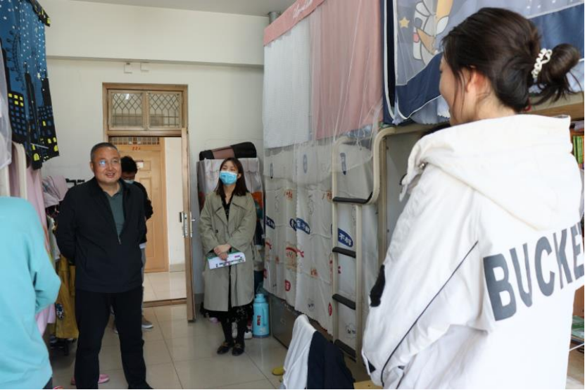 为了解学生五一小长假学习、生活情况,5月1日,学院领导陈晓敏,辅导员何涛、梁冀宁深入学生宿舍,实地看望在校学生,开展五一假期慰问。