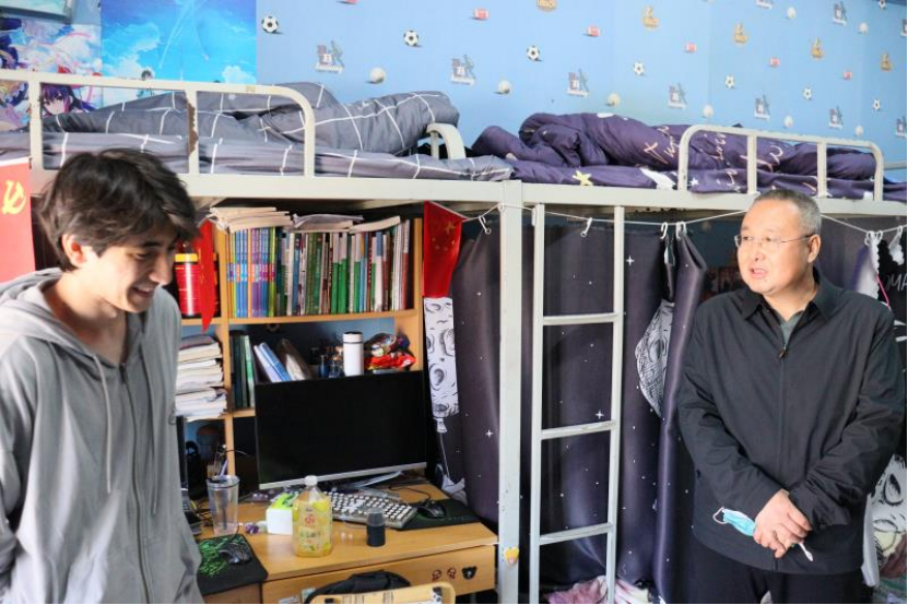 学院党委书记陈晓敏在走访中表达了对同学们节日的慰问,并进行亲切交流,询问学生在校实际情况、生活近况以及在宿舍生活中的疑难困惑,并就宿舍问题提出相关建议和指导。同时他们叮嘱学生疫情防控人人有责,希望放假期间也时刻不忘要加强疫情安全防范,注意宿舍安全问题,学生党员宿舍应起带头作用,为学生宿舍做好表率。通过本次走访活动不仅增进了师生之间的情感交流,也营造了学院全体老师与学生始终同心同向的良好育人氛围。