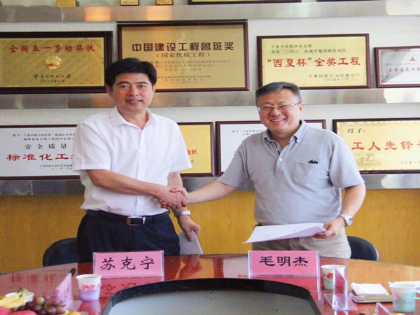 接着,宁夏第一建筑公司总经理苏克宁对公司概况进行介绍,表示公司愿意为学生的工程实践提供训练基地,使学生能够真正参与到施工现场中进行实习,在学校和施工现场不同的教育环境中使学生的综合能力和总体素质得到全面提升。同时,希望利用学院的智力优势和资源优势,解决工程实际问题,希望双方能以此为合作起点,在学生培养、社会服务等方面共同努力,做出成效。