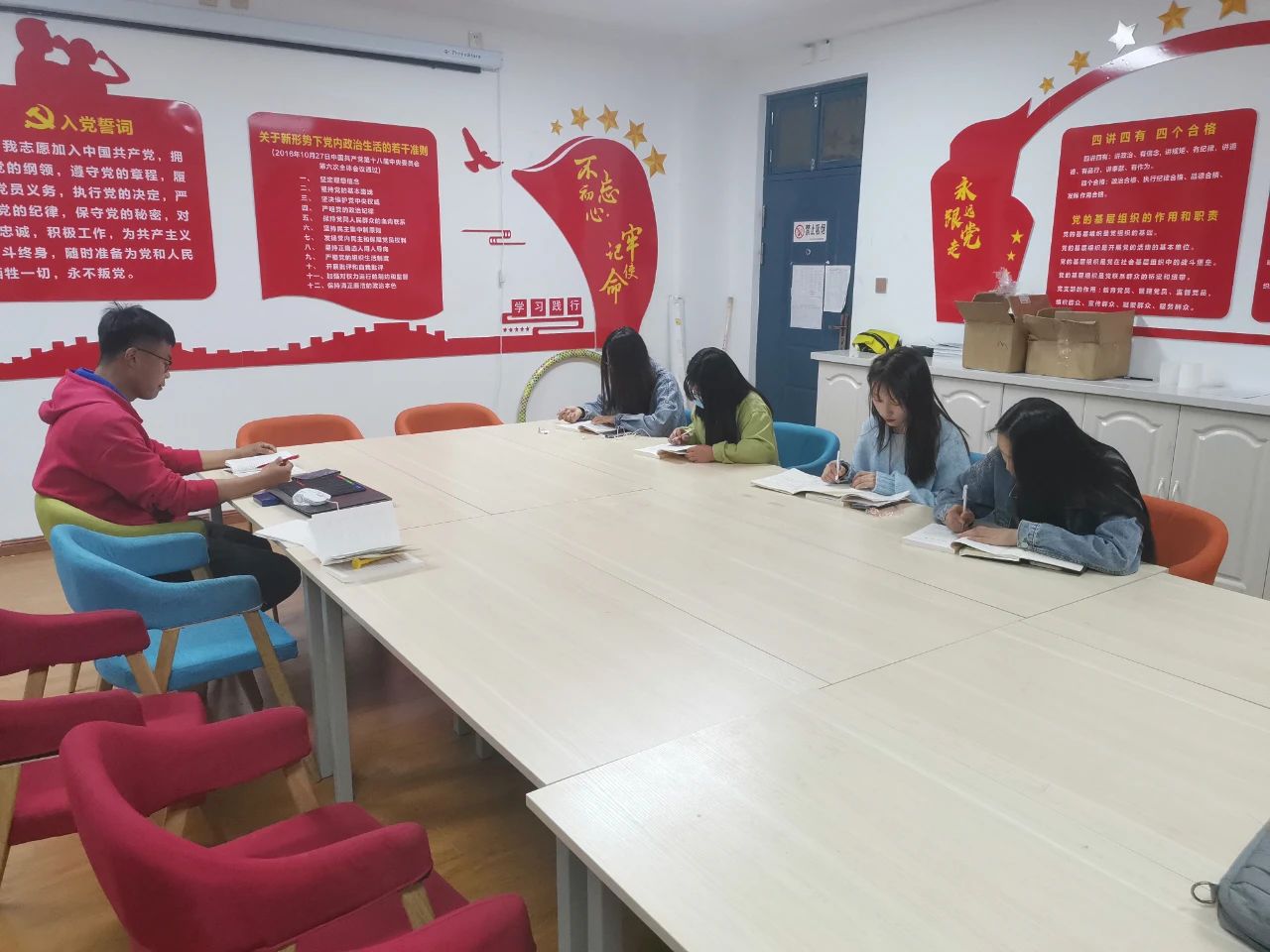 4�6日晚上,学业帮扶党小组在15号学生公寓党员活动室开展了第一次党史学习教育。会议根据小组成员讨论以及小组实际情况,提出了小组党史学习教育具体方案,随后结合学习教材习近平同��论中国共产党历史》开展理论自主学习,随后小组每名成员对学习内容进行了交流互动。陈俊结合学习内容,分享了“中国共产党为什么‘能’;马克思主义为什么‘行’;中国特色社会主义为什么‘好’”的内在原因。朱新欣逐一对《讲好中国共产党的故事》篇章中提及的历史人物所展现的革命精神进行了分析讲解。贾浩结合党史看现在,他谈到青年一代更应继承发扬共产党人的奉献精神。李昱甫对本次学习进行了总结。他提到明白、讲好“‘能’、‘行’、‘好’”是开展这次党史学习教育的重心,是“学史明理”的重要内容,也是学史增信、学史崇德、学史力行的重要前提�