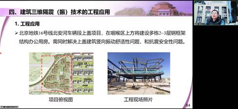 潘鹏教授的报告针对地铁系统的高密度开发对周边建筑物的影响及高层建筑结构的竖向振动问题,利用具有较低剪切刚度、较高轴压刚度和强度的新型肥槽隔振装置,实现肥槽隔振的同时确保结构和肥槽的安全性;针对高频竖向振动为主的地铁激励对建筑物舒适度的不利影响,研发橡胶-双摆摩擦摆三维隔震(振)支座等新型结构隔振装置,在实现地铁振动控制的同时通过水平隔震提高了结构地震作用下的安全性,研究成果在实际工程中得到应用。