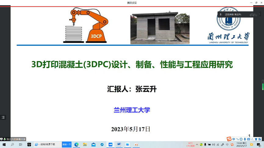 师生做了题目为“3D打印混凝土(3DPC)设计、制备、性能与工程应用研究”的线上学术报告。报告会由毛明杰院长主持,性爱游戏