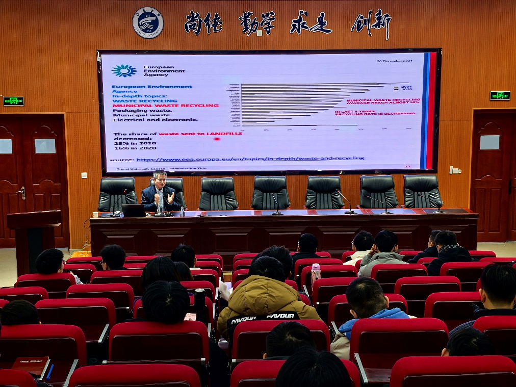 师生做了题为“建筑行业固废资源化和吸碳化:欧盟地平线研发计划资助的若干多方合作项目成果及进展”的学术讲座。学院师生100余人聆听了讲座,报告会由学院副院长刘海峰主持。