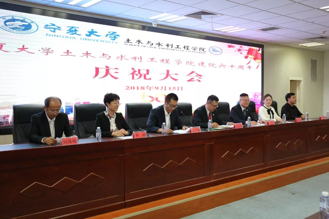 出席本次庆祝大会的有学院现任领导,学院历任退休老领导任天林、田军仓、何风军、王蔚书、宋建夏、姚青云,退休老教师毕先、孙庆合、赵素珍,长安大学公路管理学院党委书记田新民。参加本次大会的还有宁夏建筑科学研究院院长吴学谦、天津市农业科学院/南开大学教授许向路、深圳大学教授武春江、银川宏达职业技能培训学校校长哈丽琼、宁夏第一建筑有限公司党委书记刘东升、总经理苏克宁,宁夏共和建设工程有限公司总经理殷展眉、国网电力公司宁夏分公司后勤处主任苏震等百余名来自全国各地的校友,以及学院师生代表300余人。庆祝大会由学院党委副书记苏宇静主持。