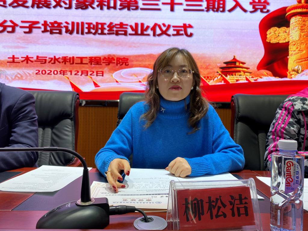 2020�12�2�12:30,土木与水利工程学院第十二期党员发展对象和第三十三期入党积极分子培训班结业仪式在知行楼三阶举行。会议由学生办公室何涛老师主持,学院党委书记张晓天老师、党委副书记柳松洁老师、各学生党支部书记�2020年秋季学期入党积极分子�2020年下半年党员发展对象全体学员参加了本次结业仪式�