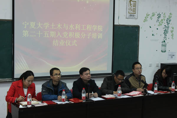 第二十五期入党积极分子培训结业仪式在工科楼三楼阶梯教室隆重召开。出席此次结业仪式的领导有学院党委书记马正亮老师,党委副书记王德全老师、张强老师,学办主任郭利老师及各系党支部书记,119名入党积极分子参加了本次典礼。