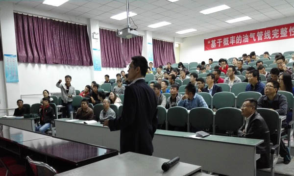 师生做了以《基于概率的油气管线完整性管理》为题的学术报告,学术报告立足于发达国家已有社会基础设施的生命周期维护,使用多种理论方法对油气管线的维护和管理进行了预测和验证,也为性爱游戏