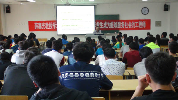 C区L楼308教室做了题为《如何从一名大学毕业生成为能够服务社会的工程师》的报告。报告会由毛明杰副院长主持。参加此次报告会的有水利厅科教处江静处长,土水学院水利水电、农业水利工程、交通工程、土木工程等专业的200余名同学以及王红雨教授、李王成、冯克鹏等水利系老师。为本次报告会的顺利举行,土水学院李应海副院长、办公室主任陈艳、学生办工室主任郭利做了大量的会前准备工作。