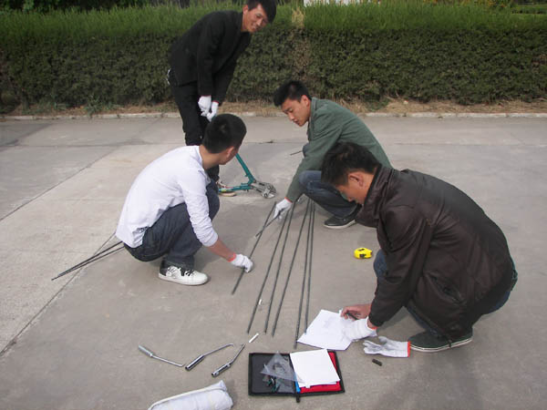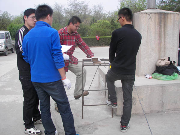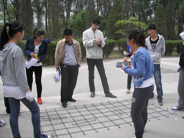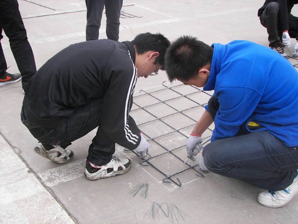 学生理论应用及实际操作能力,推动就业创业工作的深入发展,土水学院面向2013届毕业生组织开展了实训大赛系列活动。4月27日上午8:30,土水学院第一届“识图钢筋加工”实训大赛在C区工科楼小广场顺利举行。副院长毛明杰、党总支副书记张强观看了比赛,比赛特邀毛明杰、金宝宏和柴立志等三位老师担任评委。