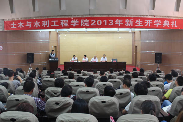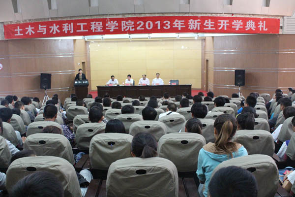 在B区图书馆报告厅举办了2013级新生开学典礼。田军仓院长、马正亮书记、崔自治副院长、各系系主任、三办一中心主任和2013级各班班主任及全体新生参加了开学典礼。典礼由张强副书记主持。
