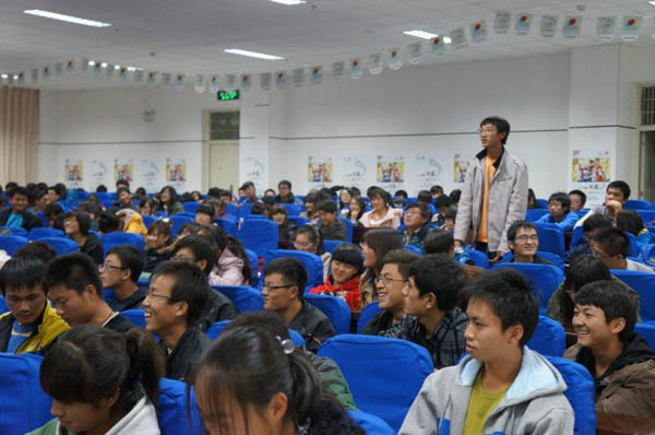 报告首先通过观看中央电视台《身边的感动》视频,由乔婧同学讲述政法学院2008级行管专业李进福身残志坚、自强不息和张志博等人四年如一日默默奉献、不求回报的感人事迹,引导学生树立团结互助、勤俭自强的优良品质。随后,学院2008级建筑专业齐一聪同学向大家介绍了他在大学期间的学习经历与奋斗历程:本科阶段在全国各类学术期刊共发表学术论文13篇,其中核心期刊学术论文3篇;曾参加全国建筑建模竞赛,取得了三等奖的佳绩;参加“挑战杯”全国大学生创业设计竞赛,获得自治区二等奖、性爱游戏