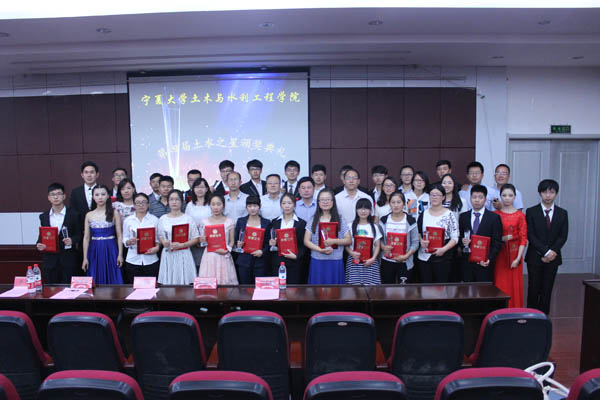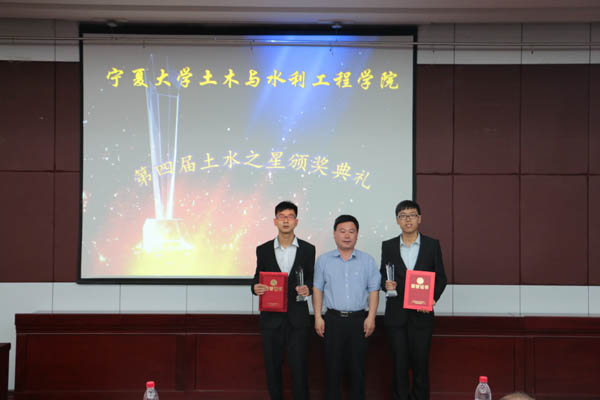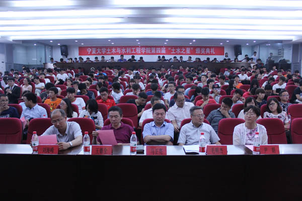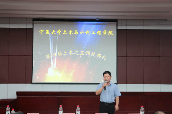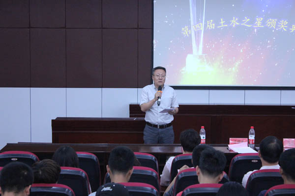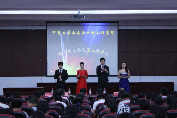 典礼开始之初,院长毛明杰老师致开幕辞,他指出此次评选活动参与面广、宣传效果显著,学院通过表彰优秀、树立榜样,形成以笃学敦行的精神激励人,以创新创业的成绩鼓舞人,以文艺艺术的魅力感染人,以公益服务的行为影响人的良好氛围,从而激励土水学子在治学成才的道路上勇往直前,用有限的青春传播无限的正能量,在新青年大学生的宏伟蓝图上实现中国梦。之后,大家一同观看了“土水之星”宣传视频,主持人引导大家一一观看了各候选人视频并依次宣读组委会给出的评价。学院党政领导和各位老师为“学工之星”、“学习之星”、“公益之星”、“科研之星”等获奖学生颁发了奖杯和证书。每位获奖同学都表达了自己的获奖感言,奖杯不仅是一种荣耀更是一种期待,今后的工作学习生活中同学们更应该脚踏实地,奋勇向前。颁奖典礼最后,学院党委书记马正亮老师讲话,马书记首先对获奖同学表示祝贺,鼓励获奖同学在学习、实践等方面继续发挥榜样的作用,在我学院开创“头雁领飞,群雁随行”的良好局面。学院将“土水之星”活动打造成为学院的特色活动,力争在“十三五”人才培养计划中将“土水之星”打造成学校的品牌活动,更好地促进学生成长成才。