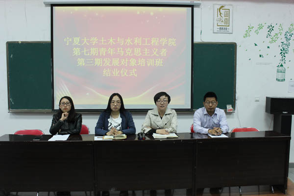 2016年4月21日中午,性爱游戏 第三期发展对象培训班暨第七期青马培训班结业仪式在工科楼三阶教室举行。性爱游戏 党委副书记陆瑜、团委书记王娜、辅导员老师陶雪梅、惠迎新及第三期发展对象培训班、第七期“青马班”培训班全体学员参加了此次仪式,仪式由团委书记王娜主持。