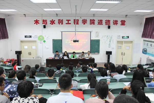 党委副书记陆瑜、学办主任郭利、团委书记王娜、水利系党支部书记陶雪梅、土木系党支部书记惠迎新以及56名学员参加了此次开班仪式。
