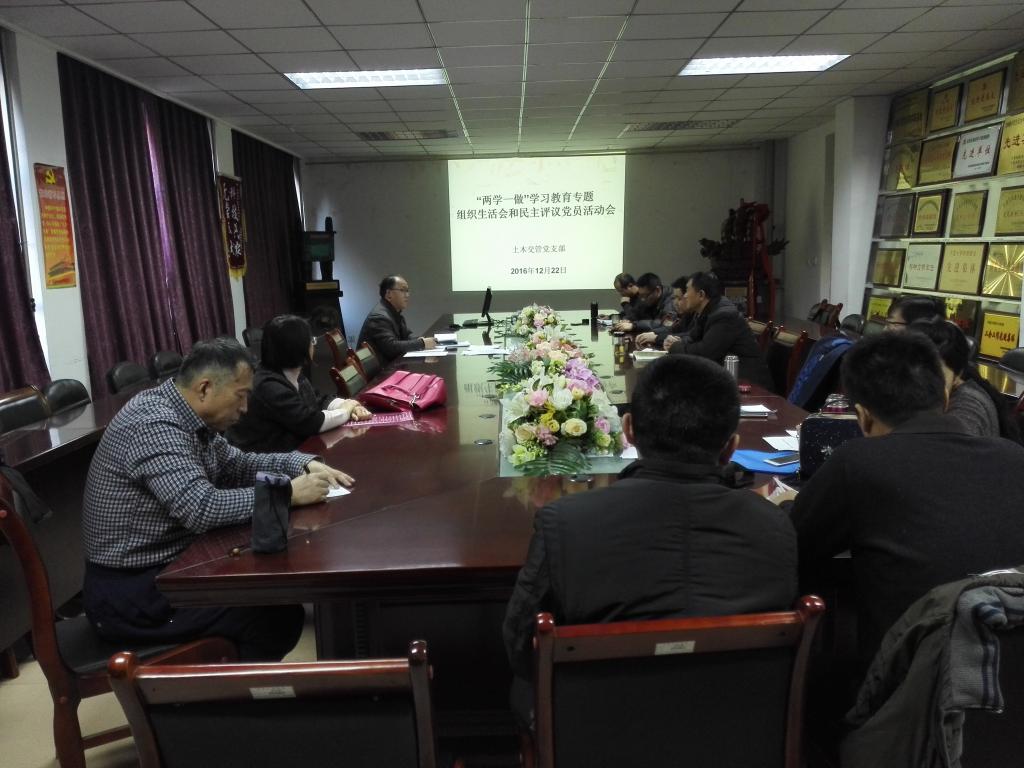 12�22日上午,按照学校和学院党委“两学一做”学习教育方案部署和支部工作安排,土木与水利学院土木交管教工党支部在学院四楼会议室以“学习贯彻十八届六中全会精神”为主题,围绕“两学一做”学习教育要求召开专题组织生活会,学院党委副书记苏宇静、副院长刘海峰以普通党员身份参加了会议,会议由支部书记张学科主持�