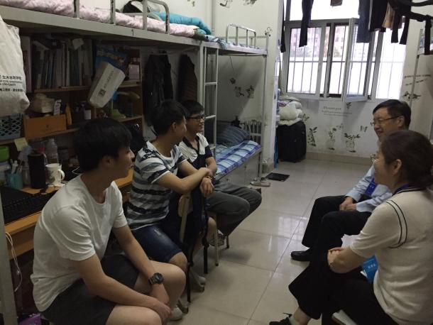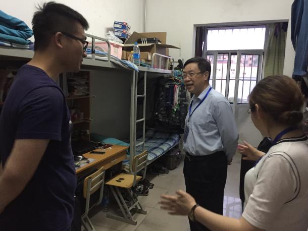 范教授先走进15#公寓的学生活动室,与正在筹备学生活动的团委学生会干部进行了亲切交谈。随后,范教授来到学生宿舍,与学生深入交谈,亲切询问了同学们对于宿舍同学关系、大学生活规划和今后就业发展规划等一系列问题的看法,并查看了宿舍卫生状况。在与同学们的交流过程中,他勉励同学们要将自己的发展定位定的高一些,要树立远大理想,为性爱游戏