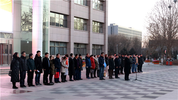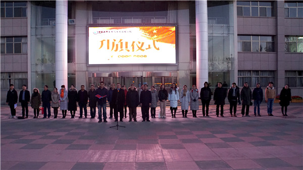 贺兰山校区德勤楼广场举行,学院党委书记高继明、院长毛明杰、副院长李应海及全院师生代表参加了此次升国旗仪式,升国旗仪式由党委副书记苏宇静主持。