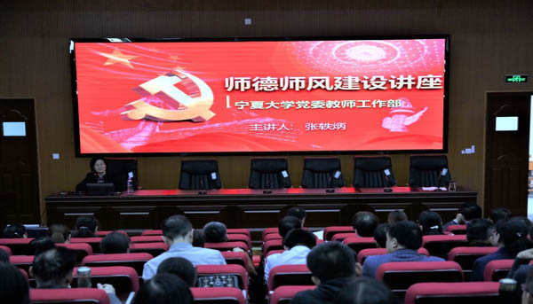 为深入贯彻落实教育部《新时代高校教师职业行为十项准则》、《关于高校教师师德失范行为处理的指导意见》等文件精神,推进《宁夏大学师德失范行为处理办法(试行)》顺利实施,进一步加强我校师德师风建设,使广大教师牢固树立“立德树人,教书育人”理念,营造风清气正、和谐健康的育人环境�2019�5�15日下午,土木与水利工程学院党委邀请宁夏大学师德师风建设宣讲团成员、物理与电子电气工程学院张轶炳教授在文萃校区知行楼三楼报告厅作了师德师风建设专题讲座,土木与水利工程学院90余名教职工听取了讲座。讲座由学院党委书记高继明主持�