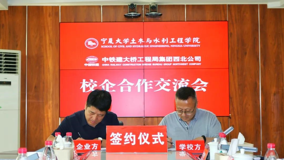 与中铁建大桥工程局集团西北公司校企合作交流会在公司总部四楼会议室顺利举行。双方本着“校企合作,产学共赢”的目标和“真诚合作,资源共享,讲究实效,共同发展”的原则,达成了合作共识,庄重地签署了校企战略合作协议,正式确立了合作伙伴关系。学院党委书记张晓天、院长毛明杰,中铁建大桥工程局集团西北公司公司党委书记韩福堂出席了交流会。