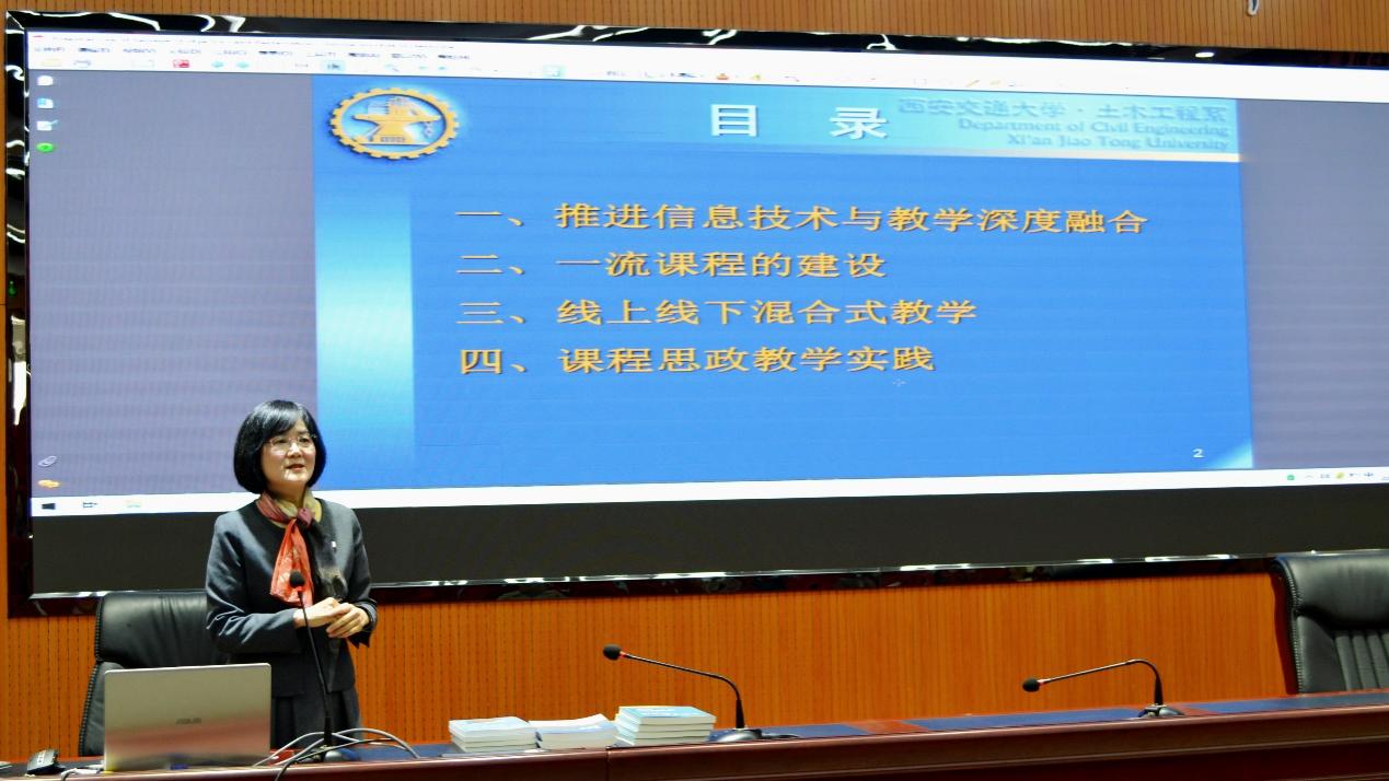 报告会上,廖红建教授将自己从教三十余年的教学经验和现代化教育教学信息技术相融合,围绕大数据驱动下教与学的新视角的主题,从推进信息技术与教学深度融合、一流课程的建设、线上线下混合式教学以及课程思政教学实践四个方面进行了别开生面的报告。
