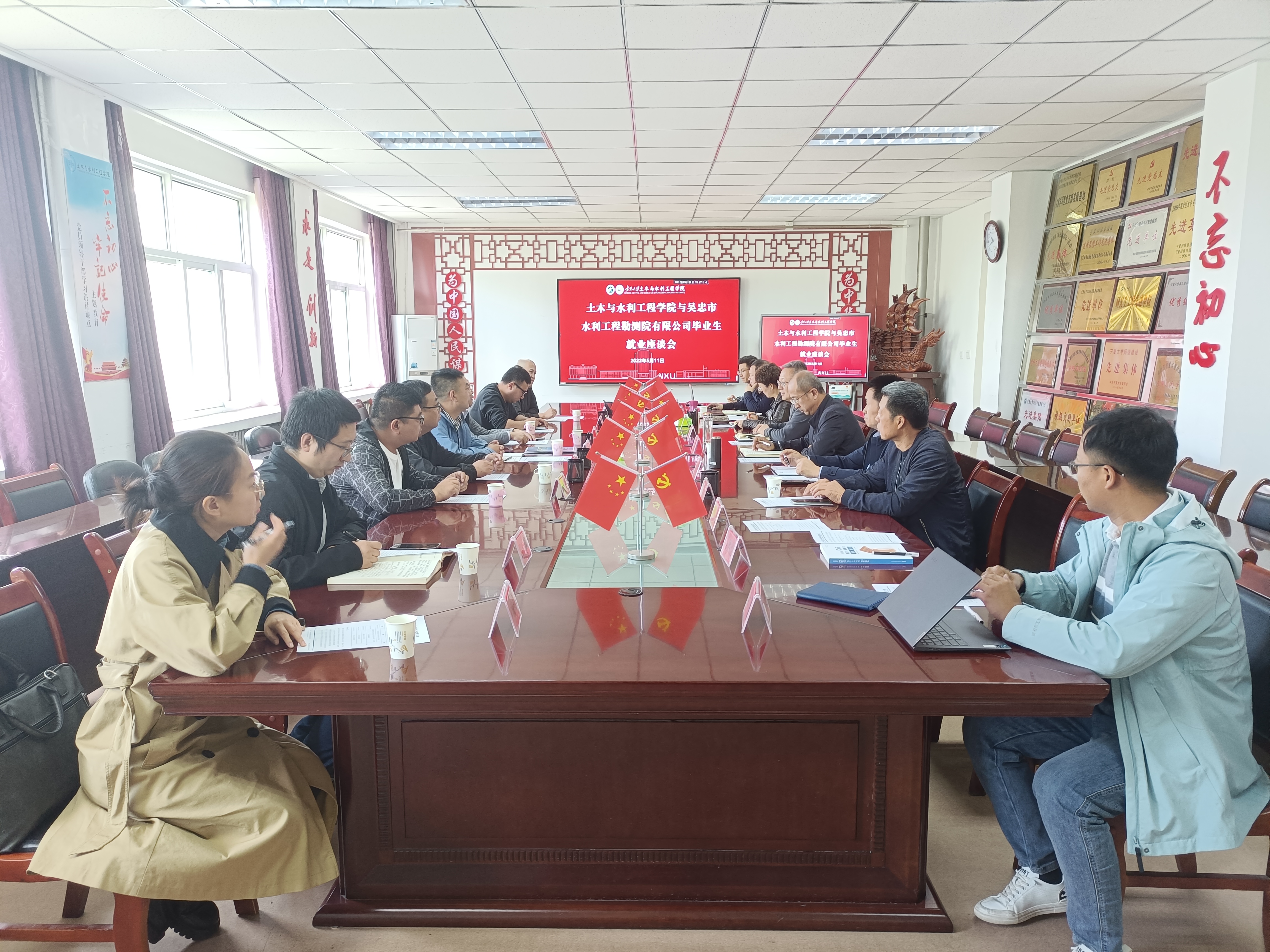 基本情况及主要成果,与会人员就校企合作、学生就业、实习实践、协同育人、技术服务等相关领域开展了深入交流,尤其在黄河黑山峡水利工程枢纽、高标准农田建设、黄河流域生态保护等方面进行热烈的讨论,气氛积极而热烈。