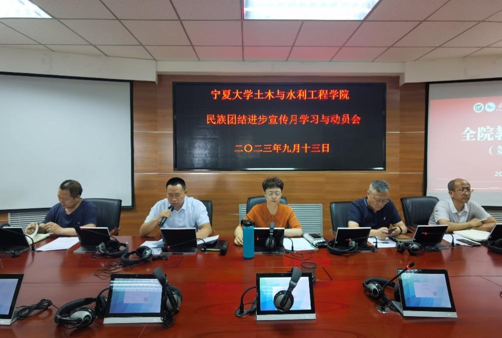 召开民族团结进步月学习与动员会,全体教职工参加,会议由学院党总支书记尹娟主持。