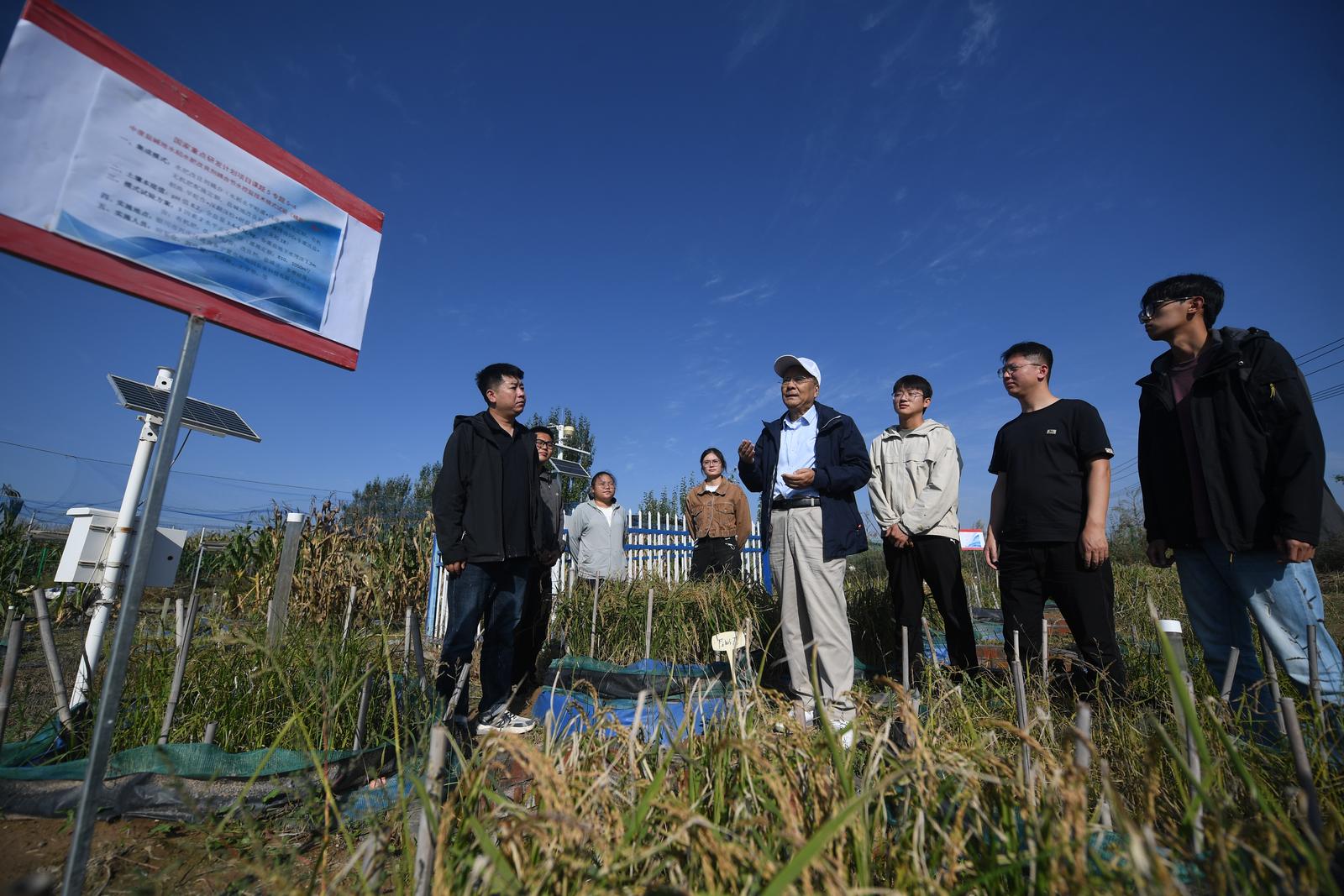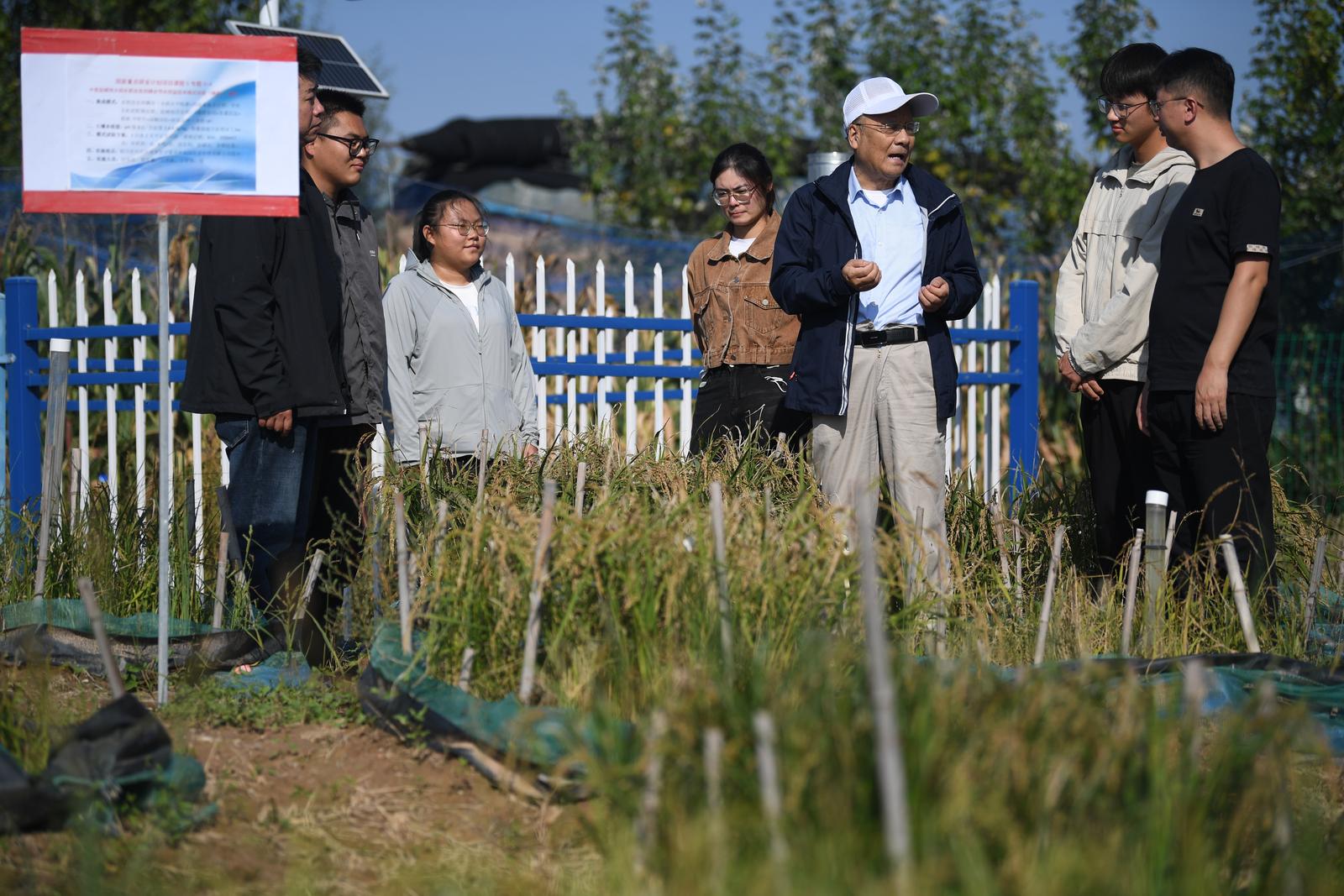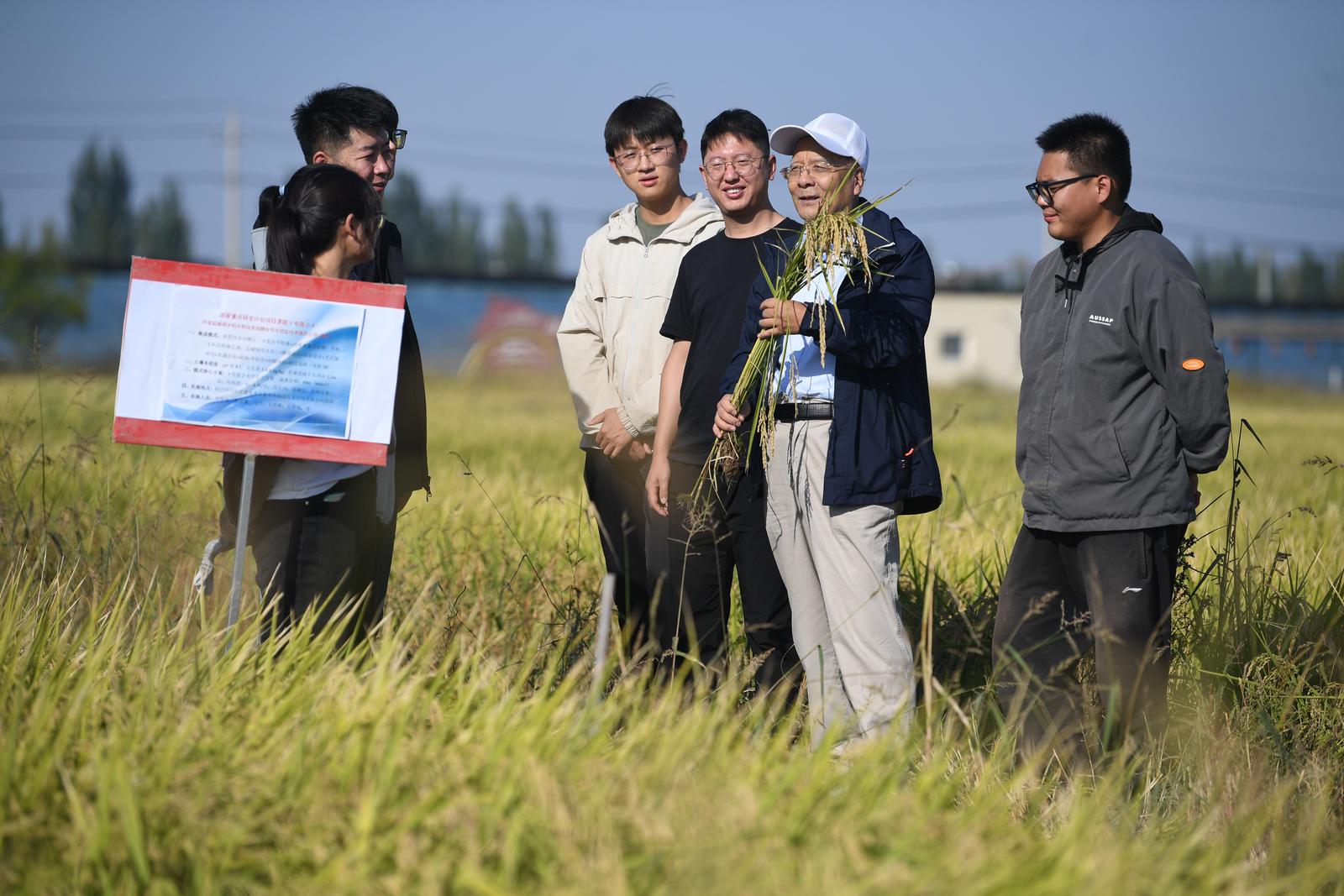 稻田金黄,随风摇曳�9�22日,宁夏水利科技领军人——田军仓教授带着自己的博士生、硕士生,站在银川市兴庆区盐碱地综合治理的试验稻田里,摸着沉甸甸的稻子,露出欣慰的笑容,转身对身旁的学生深情寄语:“科学研究既要追求知识和真理,更要服务于经济社会发展和人民群众,不能只埋头写论文,而要把文章做到大地上……�