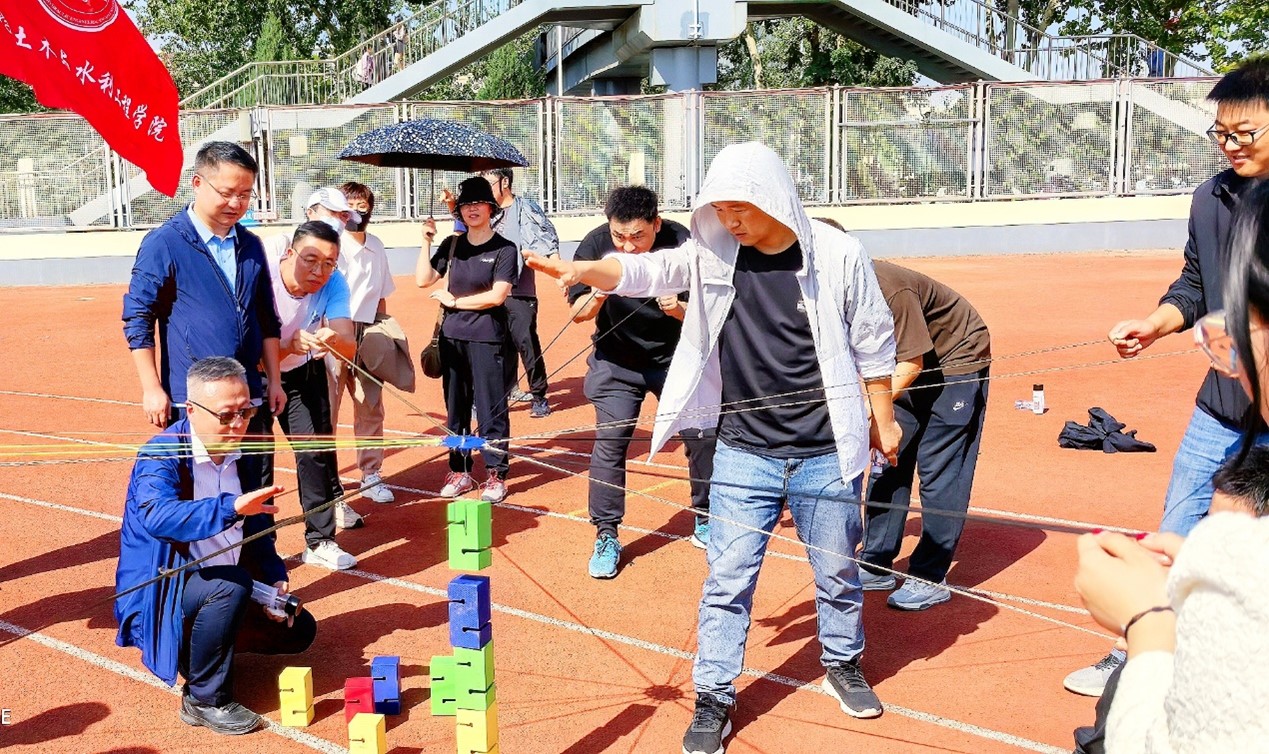 本届趣味è¿åŠ¨ä¼šè®¾ç½®äº†å¤šä¸ªå……æ»¡è¶£å‘³æ€§å’Œå›¢é˜Ÿåˆä½œæ€§çš„é¡¹ç›®ï¼ŒåŒ…æ‹¬â€œé“ºè·¯ææ¡¥â€ã€â€œè¶£å‘³æ±‰è¯ºå¡”â€ã€â€œæ‰‹å¿™è„šä¹±â€ã€â€œåˆåŠ›ç‘å¡”â€ã€â€œé‡èµ°é•¿å¾è·¯â€ã€â€œç”µè‡€è¾¾äººâ€ã€â€œå¿«ä¹å¤§å†²å…³â€�7个集体趣味比赛项以åŠâ€œè·³ç»³â€ã€â€œè¸¢æ¯½åâ€�2项个人比赛项目。土木与水利工程å¦é™¢çš„æ•™èŒå·¥åœ¨æ¯”èµ›ä¸å›¢ç»“一致ã€é»˜å¥‘é…åˆï¼Œå……分展现了团队å作精神ã€�