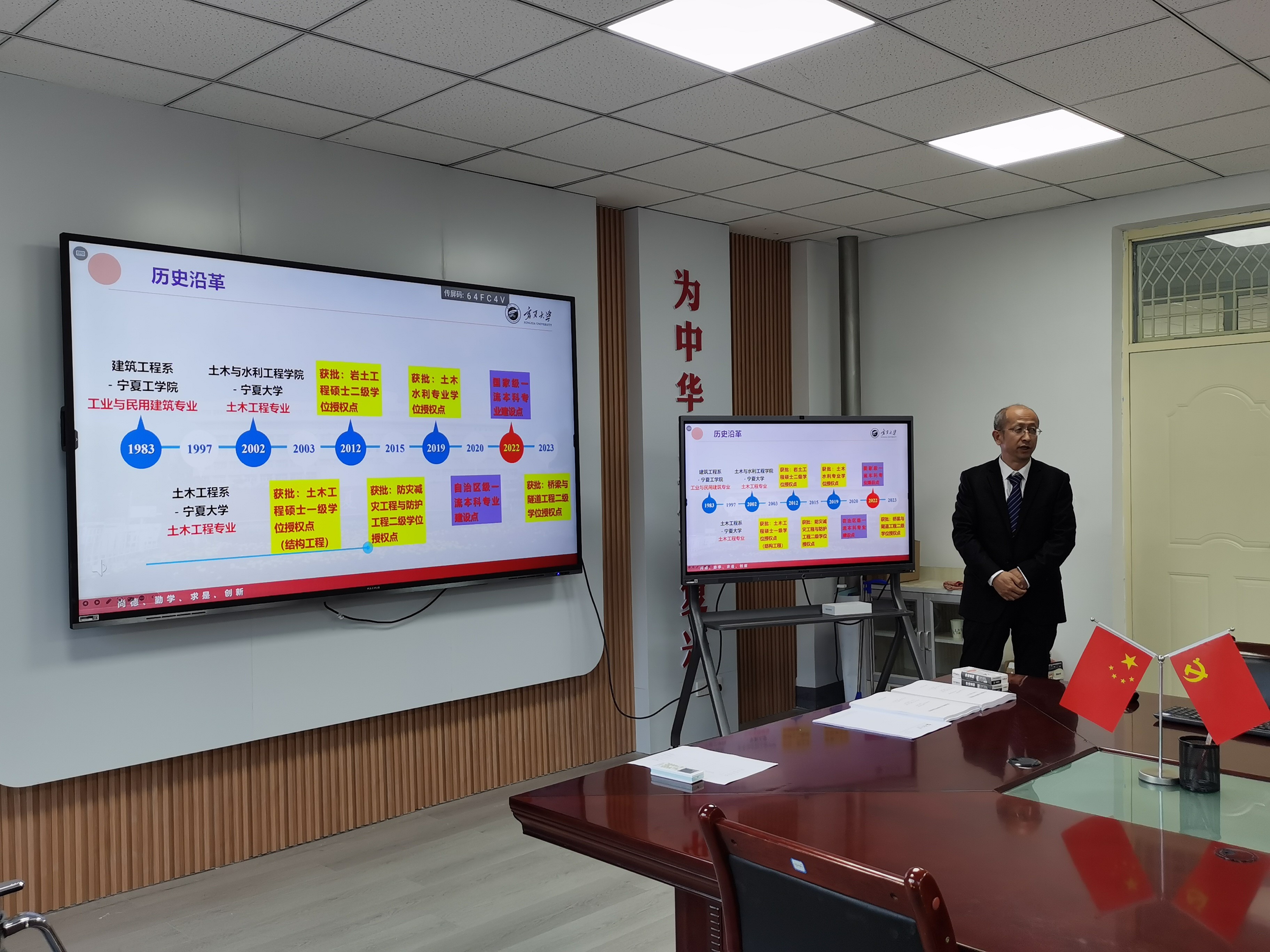 宁夏大学研究生院副院长尤桦,以及土木与水利工程学院党总支书记尹娟、院长毛明杰、副院长刘海峰、土木工程学科学术带头人、青年骨干教师等出席了此次会议。毛明杰院长首先介绍了会议专家,并对各位与会专家的到来表示热烈欢迎。刘海峰副院长围绕土木工程一级学科硕士学位授权点的基本情况、目标与标准、基本条件、人才培养、服务地方贡献等方面进行了自评汇报。专家组成员在听完汇报后,就相关问题进行了质询和交流,审阅了学位授权点自我评估报告,并分别与教师代表、研究生代表进行了座谈�
