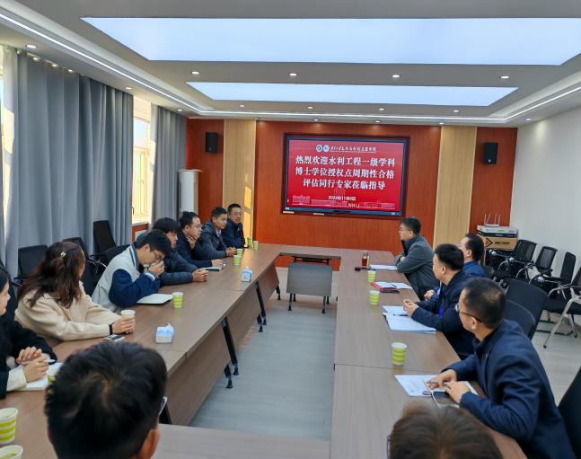 2024�11�6日,我校土木与水利工程学院水利工程博士学位授权点专家现场评估会在文萃校区知行�415会议室顺利召开。邀请到来自全国知名高校七位专家,宁夏大学副校长赵晓佳,研究生院院长车进,土木与水利工程学院党总支书记尹娟、院长毛明杰、党委副书记冯淑萍、副院长刘海峰、副院长李王成以及水利工程学科师生代表参加了本次评估会�