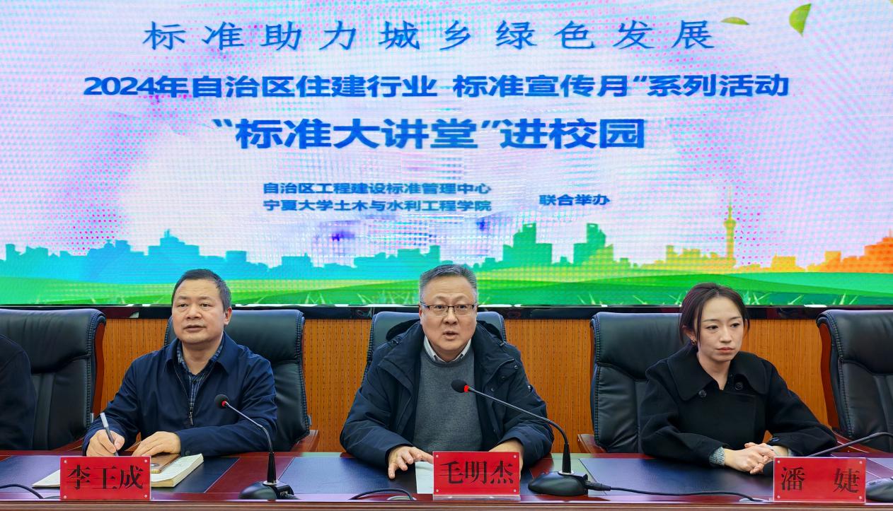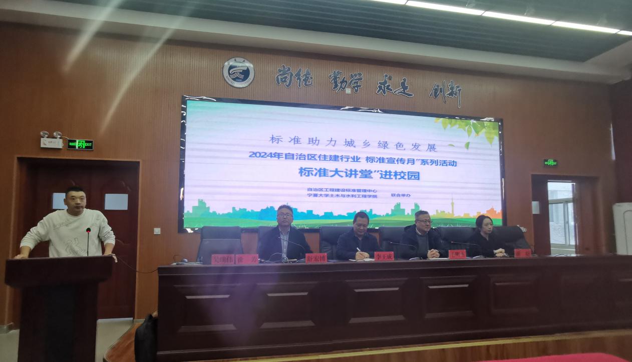 为扎实开展标准宣传月系列活动,进一步推动标准培训宣贯工作向校园延伸,根�2024年全区住房和城乡建设系统教育培训计划和�2024年“标准助力城乡绿色发展”标准宣传月活动实施方案》,2024�11�27日,由宁夏大学土木与水利工程学院和宁夏回族自治区工程建设标准管理中心联合举办了“标准助力城乡绿色发展”标准宣传月活动�