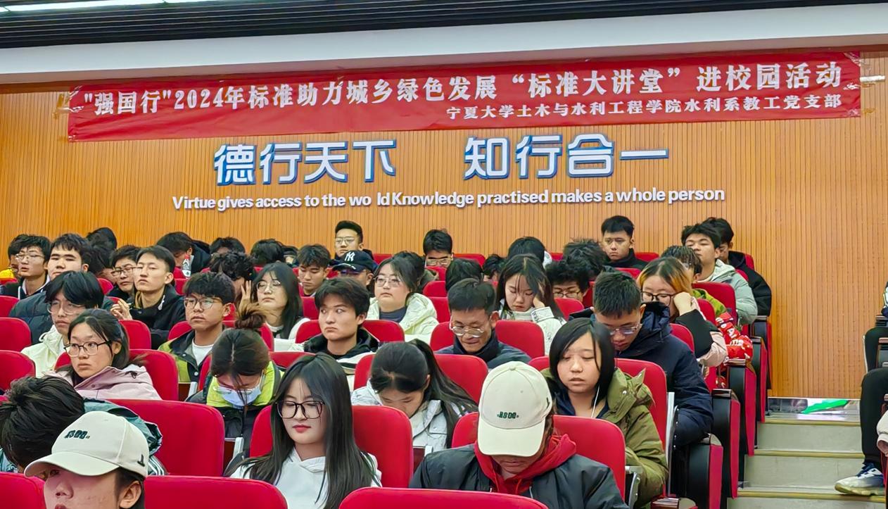 活动由水利系教工党支部承办,来自土木与水利工程学院的130余名师生参加了活动启动专题报告会,报告会由水利系教工党支部书记吴璞伟同志主持,宁夏回族自治区工程建设标准管理中心潘婕,土水学院院长毛明杰、副院长李王成参加了报告会,毛院长针对活动的重要意义作了讲话,他表示地方标准的制定和实施有助于规范地方行业、企业的生产活动,同时也有利于促进地方特色产业发展。学院在2023年和自治区工程建设标准管理中心已经成功联合举办了一次“标准大讲堂”进校园活动,今年是第二次,与学院专业相关的地方标准很多,希望能够通过开展系列活动将相关行业地方标准带入校园,走进课堂,让学生接触到地方标准的行业背景,有的放矢地学习,让老师有机会参与到相关地方标准的制定中,为学院专业发展和学科服务地方打下坚实的基础。报告会邀请编制专家舒宏博讲授《抗震宜居农房加固改造及新建技术规程》地方标准,编制专家徐芳讲授《海绵城市建设工程技术规程》地方标准�