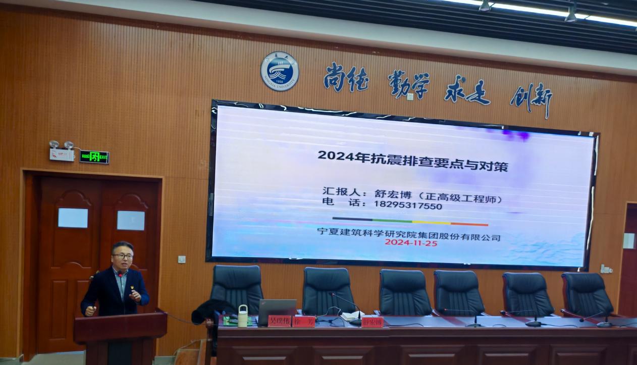 编制专家舒宏博从吴忠市盐池县民房倒塌的实际案例出发,结合之前参与过的2008�5月汶川地震期间甘南救灾现场�2023�12月甘肃积石山地震震后救灾过程和自治区建筑物、构筑物抗震调研结果,指出目前抗震标准方面乡村民房抗震是需要关注的重点。通过分析地震现场的建筑物震后特点,舒宏博高工与现场师生开展探讨式交流,将民房防震、抗震的措施一一列举,深入浅出地将专业知识呈现给大家,为农房的宜居改造和加固明确了目标�