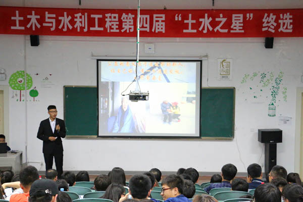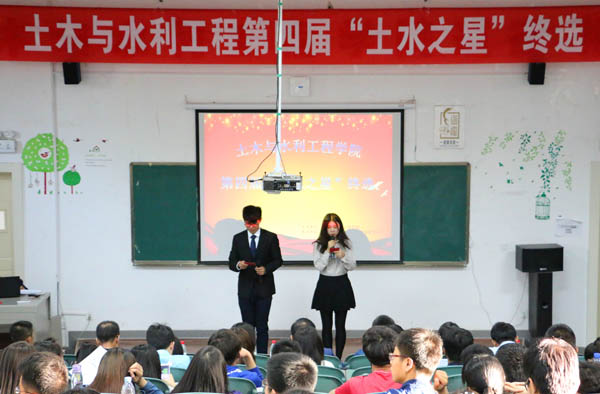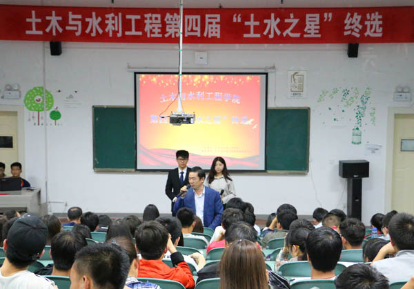 第四届“土水之星”终选在工科楼三阶教室举行。土木与水利学院党委副书记王德全、学办主任郭利、团委书记王娜、学办全体老师出席此次活动并担任评委。此外,来自不同年级的120余名学生代表作为投票人员共同参与了此次终选。