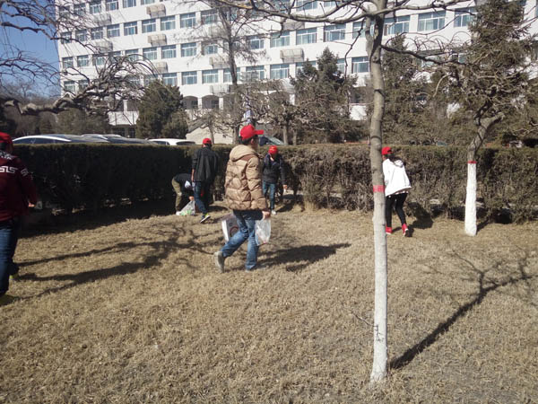 在垃圾清理过程中,志愿者们认真的将草坪上的垃圾捡除。在这里,一点是阳光,一点是微风,又一点是志愿者们劳动的身影,就像小草是绿色,天依旧是蓝色,阳光是金色一样…处处都洋溢着和谐。