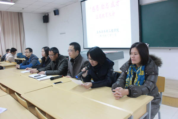 本年度各类奖助学金评定工作进行了简单的回顾。王娜老师宣读2015年国家奖学金、国家励志奖学金、国家助学金获得者名单。之后学生代表2014级周浩然、2013级谭一品、2015级张美洁三名同学分别代表国家奖学金、国家励志奖学金、国家助学金获得者先后做了发言,他们表达了对学校、老师辛勤培养的感谢之情,表示会努力学习回报学校、回报社会、回报国家。最后,张强副书记作了总结讲话,他从今年资助政策的变化、学院资助工作的情况两方面入手,对今年的评定工作进行了系统性的总结,对广大同学提出了要有感恩奉献意识、树立自立自强意识,增强勤俭节约意识三个方面的要求,希望同学们能更加努力学习,争取取得更好的成绩。