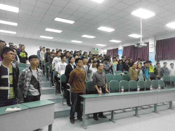 第一期“道德讲堂”于C区工科楼三阶开讲。学院学生办公室主任郭利出席并宣布活动开幕。