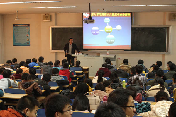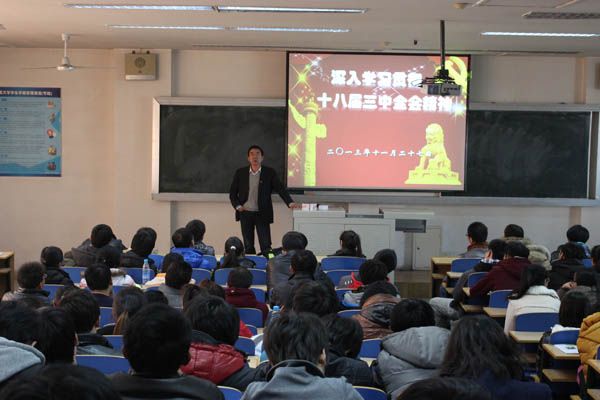 为深入学习十八届三中全会精神,2013年11月27日下午学院党委王德全副书记为全体学生党员做了专题辅导报告。