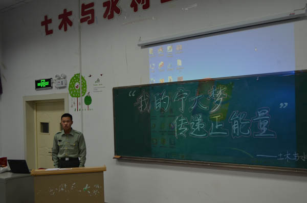 在工科楼第三阶梯教室开展了以“我的宁大梦.传递正能量”为主题的演讲比赛。莅临嘉宾有团委副书记田超群,学生会主席夏金柱,副主席陈凯、李晓峰,副秘书长李强,办公室主任王磊心及各部部长、副部长。比赛由生活部副部长黄文骏主持。