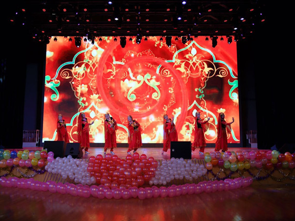 的2016级本科生和研究生致以热烈的欢迎和衷心的祝福。现场闪烁的灯光、激情的舞蹈点燃了晚会现场,同学们激情澎湃挥舞着手中的荧光棒。整个晚会表演形式丰富、内容新颖,精彩纷呈,高潮迭起,为观众奉上了一场酣畅淋漓视听盛宴。动听的歌曲、绚丽的舞蹈、有趣的小品以及幽默感十足的相声无不彰显着青春的风采,充斥着青春的活力。晚会最大的惊喜和亮点就是学办主任郭利作为神秘嘉宾现场助力高歌一曲和兼职辅导员老师胡思斯的藏族舞美轮美奂,精彩纷呈。郭主任带来的歌曲《天路》不仅异域风情浓郁,更让同学们见识到郭利老师不凡的歌喉。身着藏族服饰的胡思斯老师如同雪域高原的使者,带同学们神游到离天堂最近的西藏。优美的舞姿展现青春的美好,而动听的歌声则焕发青春的活力。歌曲串烧饱含激情,将晚会的气氛推向高潮。轻柔翩然的扇子舞,悠扬婉转的旋律,优雅灵巧的舞姿,展现了我们土水女生别样的风情。舞蹈《零下舞度》则以别开生面的形式奉献了一场新颖的视觉盛宴。新形式的微信墙现场互动方式的设立为此次晚会增色不少,高数量的上墙寄语和阅读量凸现了性爱游戏