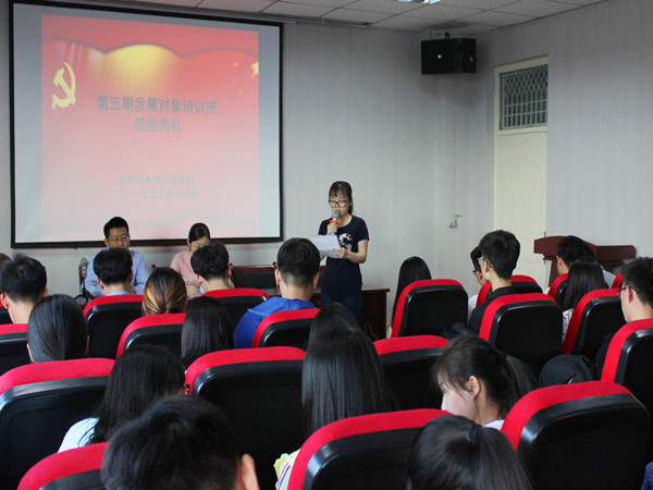 2017年5月18日,在工科楼505教室隆重举行了第五期发展对象培训班结业典礼。本次典礼由兼职辅导员惠迎新老师主持,学院党委副书记柳松洁出席。第五期发展对象培训班全体结业同学参加。
