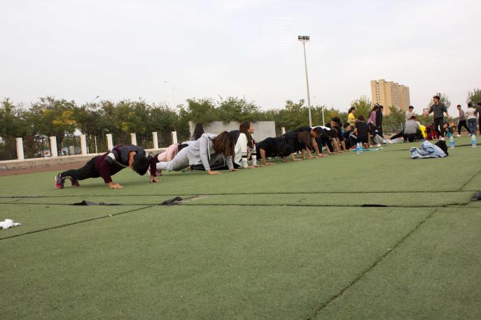 最后,活动打破了分队模式,全体学生干部重回一个整体,共同完成“生命接力圈”的任务。42名干部共同举起一根围成圆形的麻绳,向左、向上、向右、向下,循环往复。一根麻绳,在42名干部手中就这样起起伏伏6666次,一直不间断的持续了1个小时。每一次的起伏都是对整个团队的考验,每一声的呐喊都是对“团队”这个字眼的诠释。在大家一同将绳子抛上天空的那一刹那,“团队”的力量显得无比巨大。