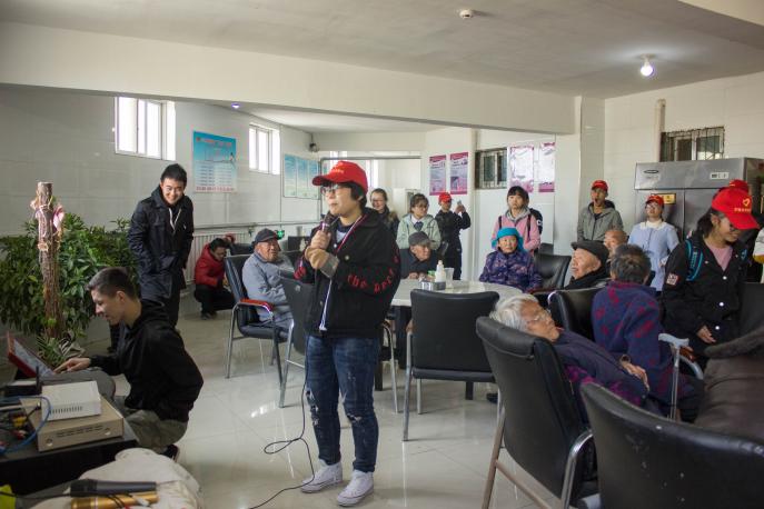龙陪恩老教授听到志愿者的到来十分高兴。他以自身的经历和多年的经验为大学生活提出的真诚的意见。同学们陪着老人聊天,帮助老人打扫整理,请洗衣服,搀扶行动不便的老人到院内散步,帮助老人更换保暖的门帘。志愿者耐心的陪伴与无微不至的照顾,让老人露出了开心的笑容。最后志愿者到达餐厅为老人表演。同学们为老人演唱歌曲,老人们更是参与其中,和志愿者一起唱军歌,说快板。现场气氛十分欢乐。