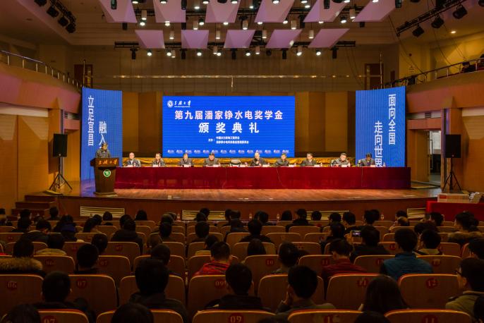 2017�12�16日,由中国水力发电工程学会和潘家铮水电科技基金管理委员会主办、三峡大学承办的"第九届潘家铮水电奖学金颁奖典�"在三峡大学橘颂音乐厅举行。中国水力发电工程学会常务副秘书长、潘家铮基金秘书长吴义航主持颁奖典礼,三峡大学党委副书记王建平主持演讲报告会。中国华电集团安全生态环境部主任王辉、中国电力建设集团科技部主任李志谦、中国电建集团北京院总经理郝荣国,以及来自水电规划设计、建设施工、电网经营、大学、科研院所等单位的领导和来宾,获奖单位的老师和学生,三峡大学师生�300余人出席了典礼。本届共有来自清华大学、浙江大学、武汉大学、四川大学、宁夏大学等18所高校和科研院所�40名优秀本科生�20名优秀研究生获得奖学金,两位获奖学生代表分别发表了获奖感言。我�2014级农业水利工程专业学生马鹏�2014级水利水电工程专业学生于明田获此殊荣�