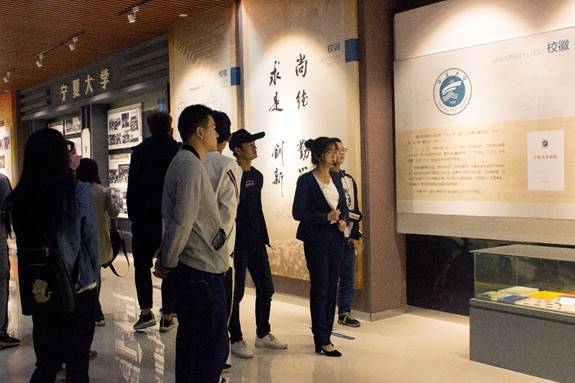 发展所历经的岁月沧桑和风雨洗礼。接着,讲解员从学校艰苦创业时期和快速发展时期说起,结合“沙枣树”精神和“尚德、勤学、求是、创新”的简明校训,讲述了学校各个方面建设的精神风貌和杰出成就。最后,解说员对学校人文、地理、教学、科研以及对外交流等方面进行了详细的阐述,告诉我们每个宁大人应该具备和发扬脚踏实地、志存高远,不畏艰难、团结奋进,努力实现跨越式发展的精神态度。