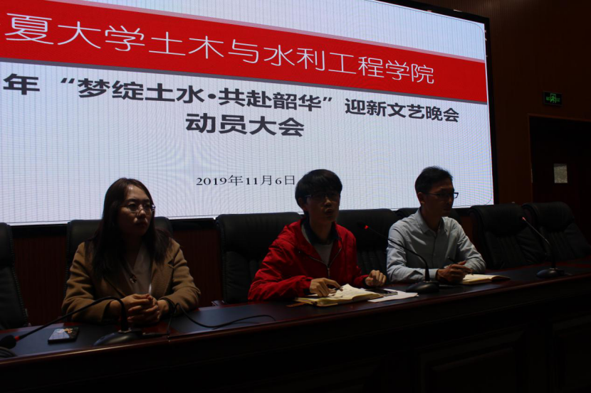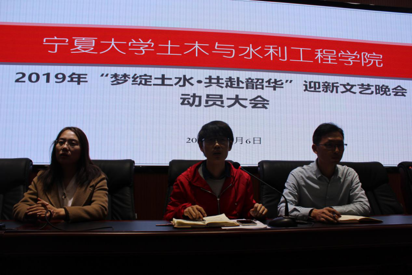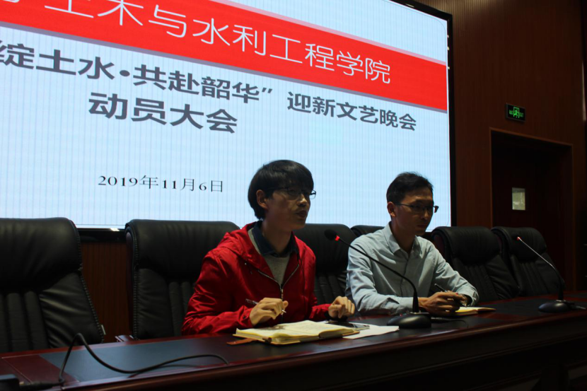 2019年“梦绽土水·共赴韶华”迎新文艺晚会动员大会在知行楼三阶报告厅顺利召开。学生工作办公室王娜、蒋宇欢、万愉快出席会议,全体迎新晚会表演人员参加了本次会议。