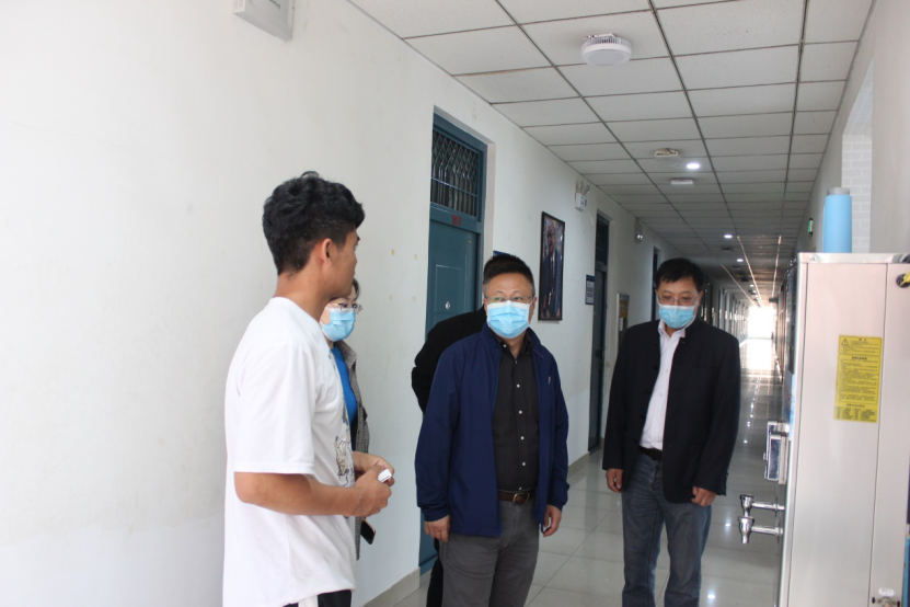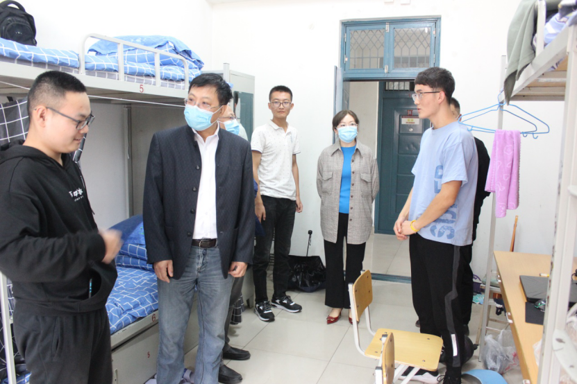 2020年9月13日,性爱游戏 党委书记张晓天、院长毛明杰、党委副书记柳松洁、2020级本科生辅导员何涛于15号楼公寓看望2020级学生。